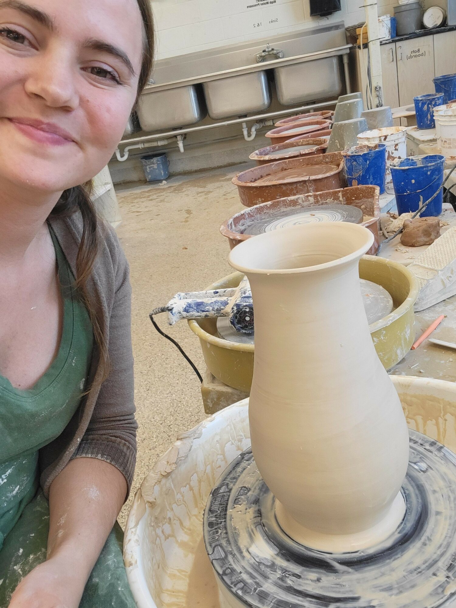 Monday through Friday, I work as a high school ceramics teacher at Wasatch High School in Heber, Utah. My day typically begins at 6:30 a.m. as I prepare for and commute to work. Most days, I teach four classes, including Pottery, Advanced Pottery, and AP 3D Art, where I guide students through their creative processes and individual projects. Before and after school, I dedicate additional time to maintaining the studio—cleaning, recycling clay, and loading kilns.