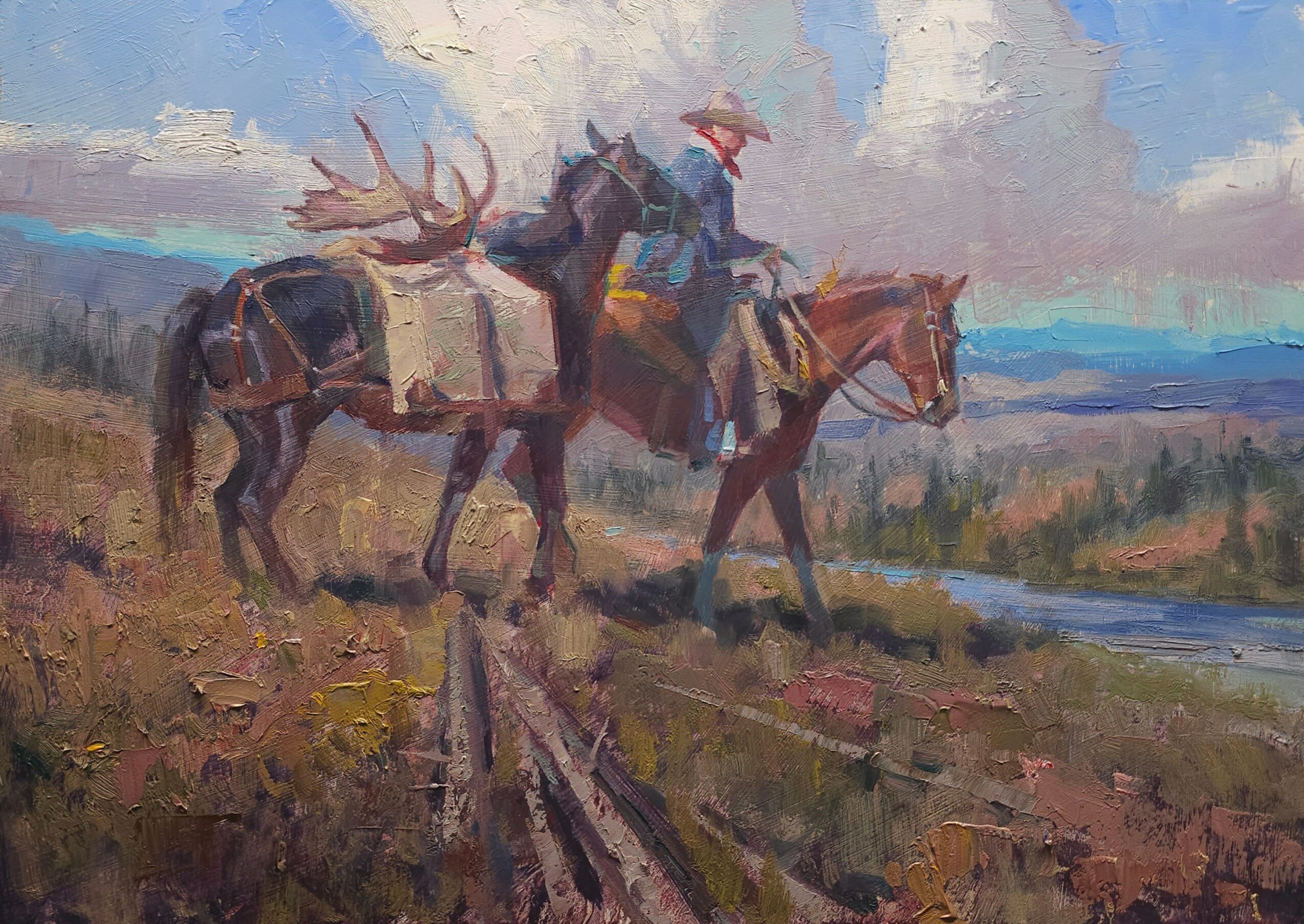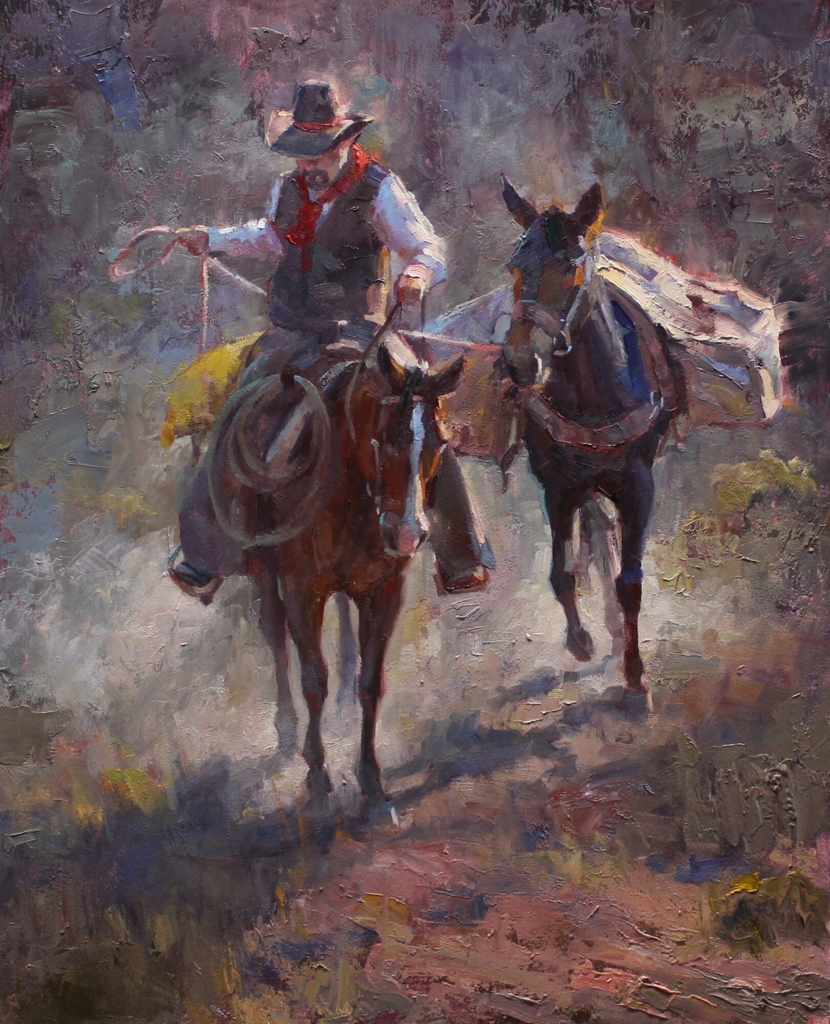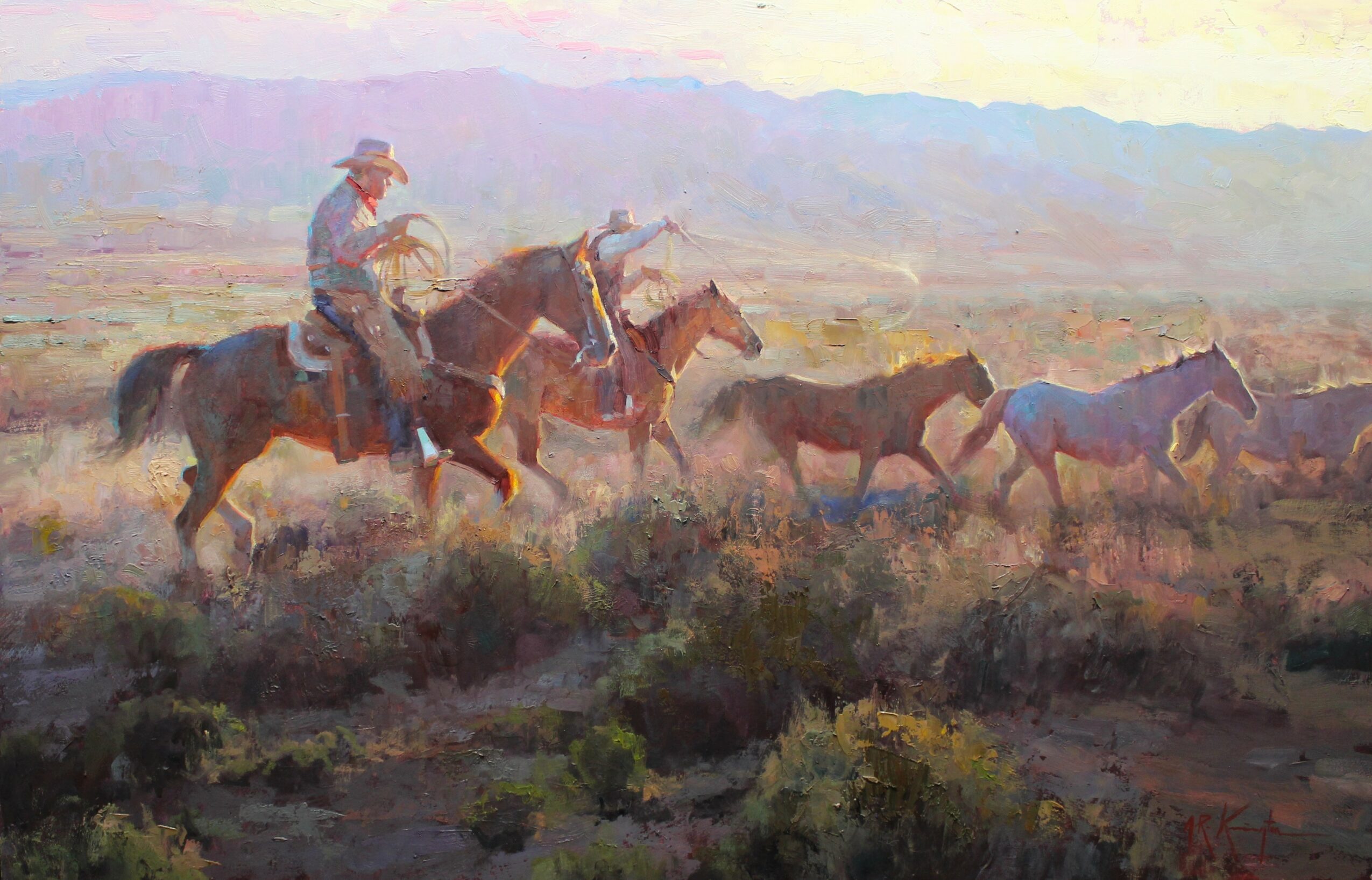 My paintings are inspired by the land I know and love, as well as my deep ranching roots. My style ranges from loose, impressionistic brushwork rich in color to pieces that showcase fine detail and realism. This variety allows me to capture both the emotional atmosphere and the subtle truths of the