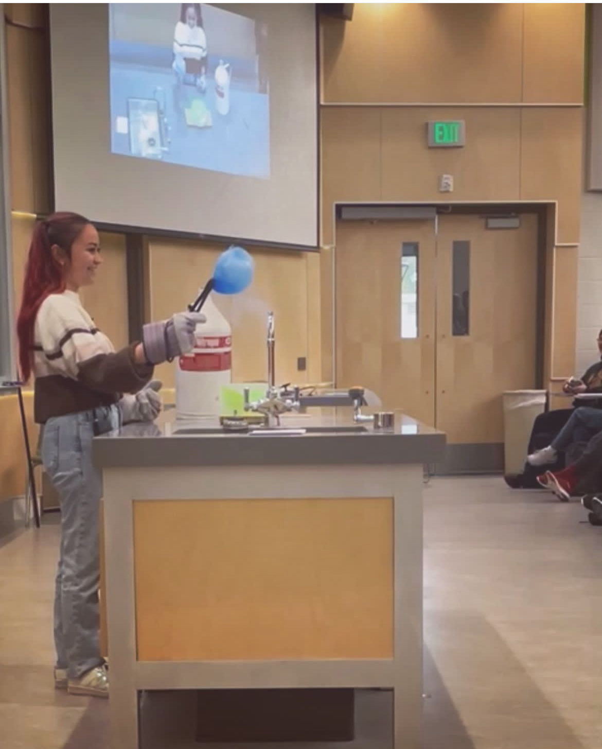I had another TA film my demo that day, mainly to get an idea of my teaching performance through a third-person point of view. I wanted to show my mom what liquid nitrogen was and how it behaved, but, as she never had the opportunity to study chemistry, I knew she didn’t have the background knowledge to understand what my demo was about. So instead, I sent her a clip of myself dumping the liquid nitrogen on the floor after my demo was finished.