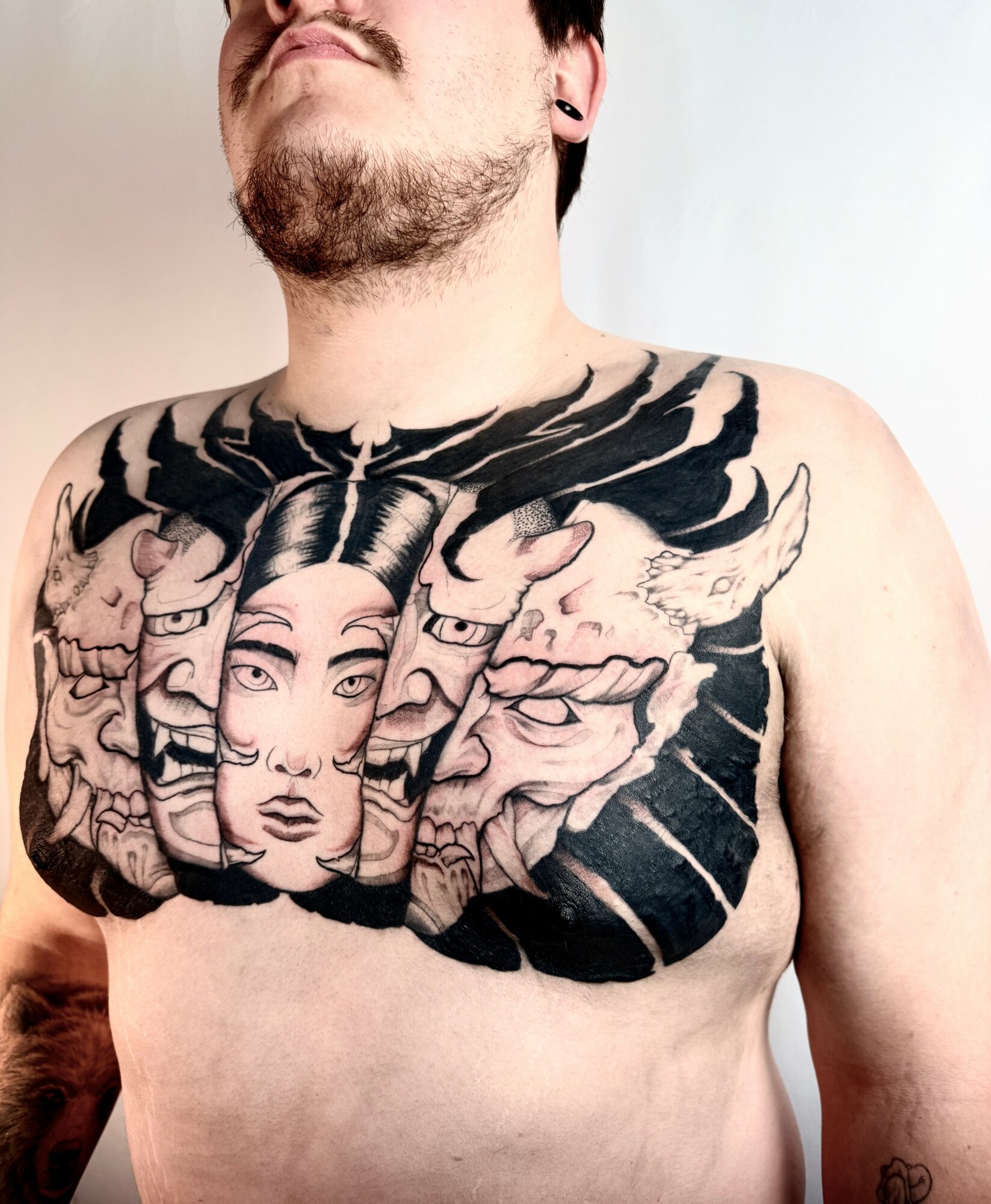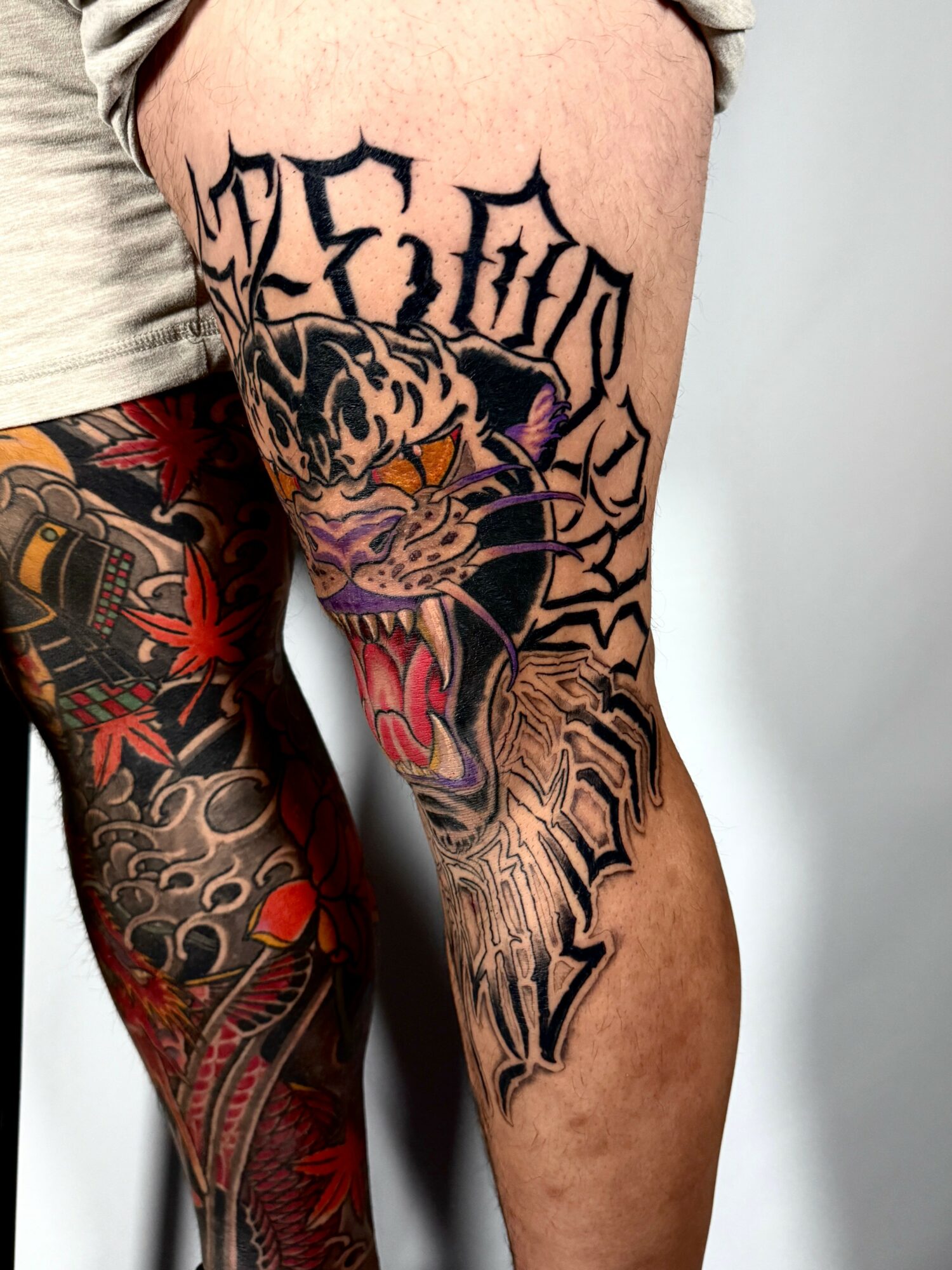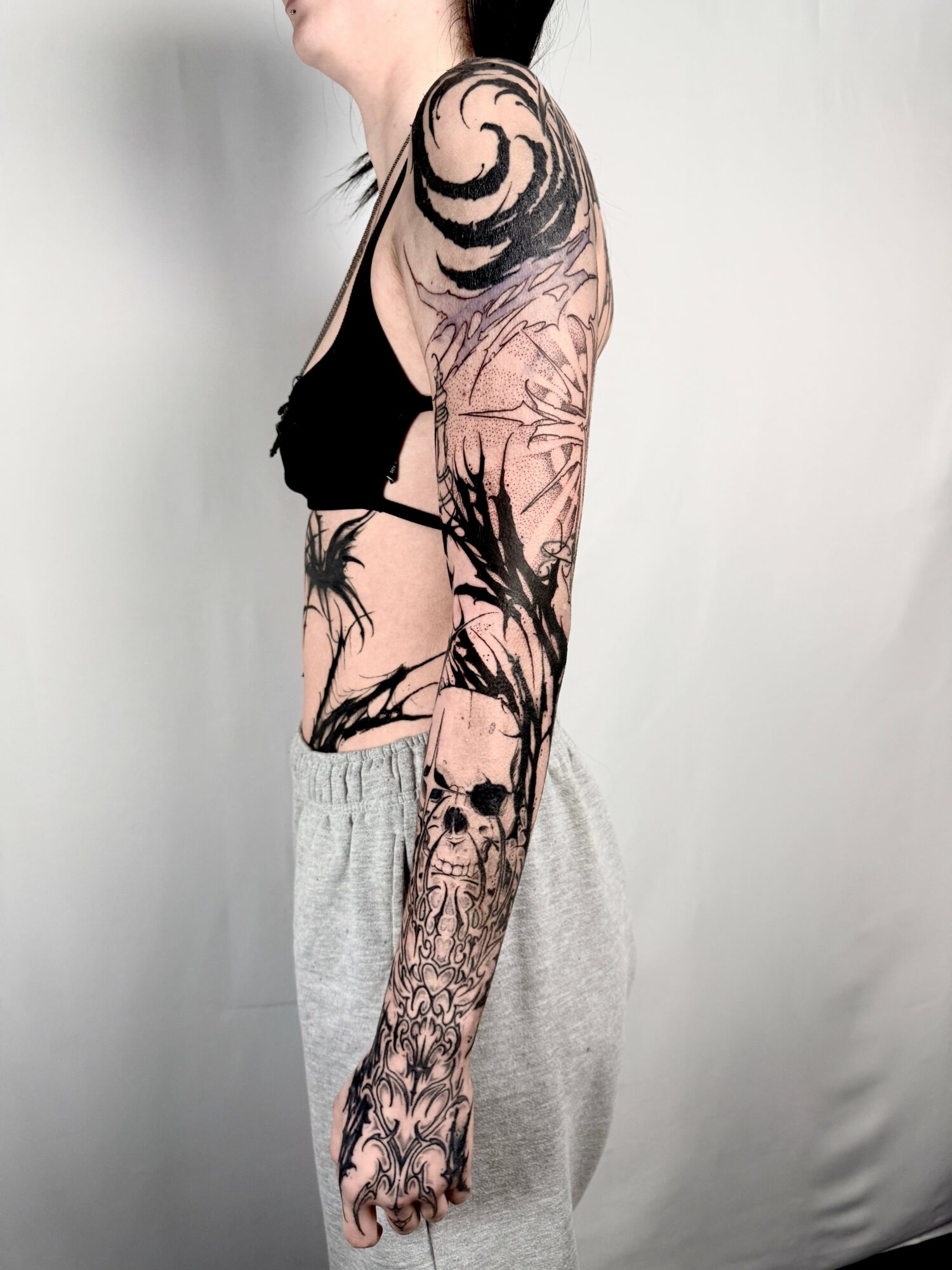 I’m a tattoo artist, I specialize in Grimy blackwork and Neo traditional. I do a lot of blast overs and large scale lettering. I am primarily only tattooing large scale work. Sleeves, back pieces stuff like that.