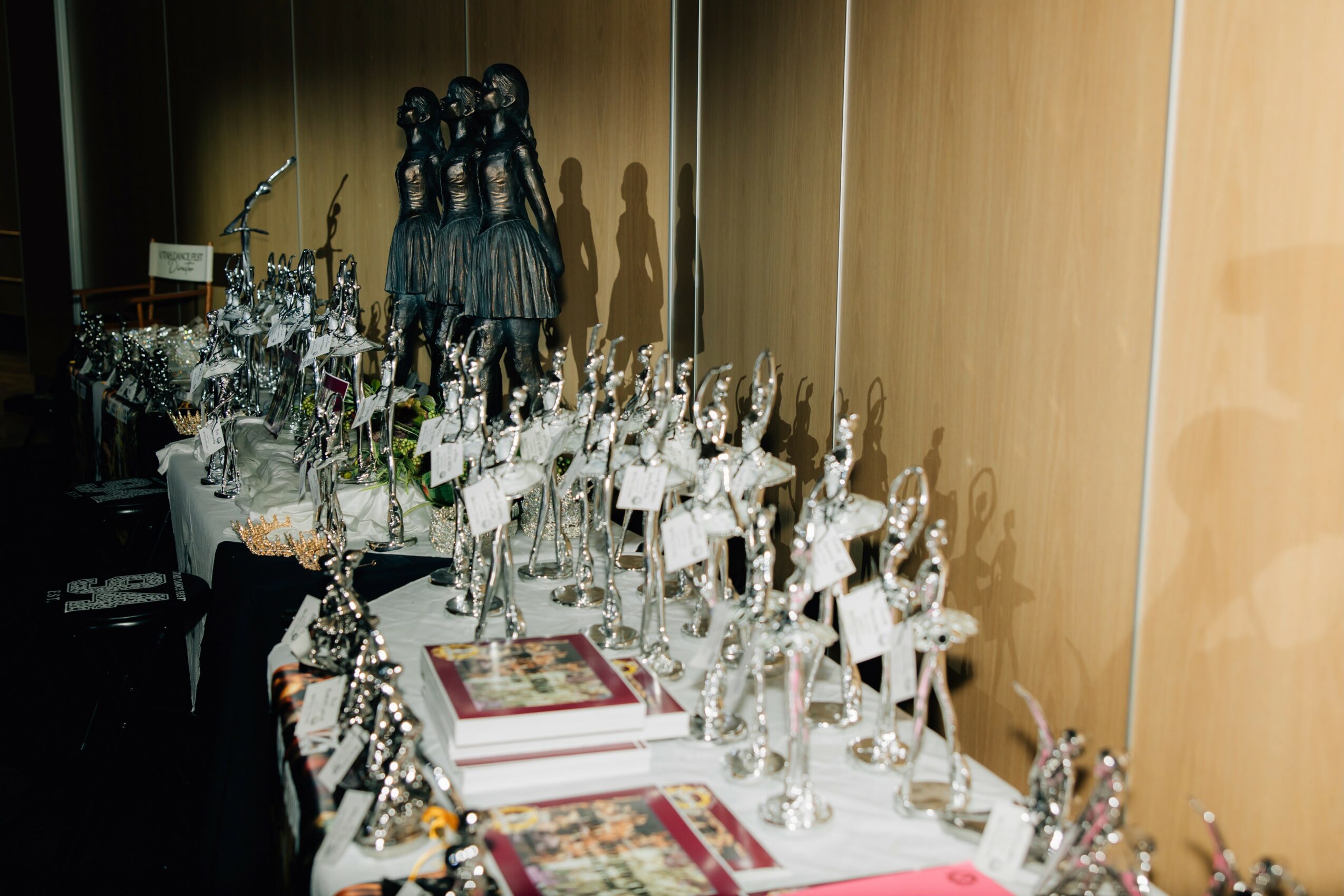 Utah Dance Fest is known throughout the region for being one of the mot organized, on-time, family-friendly and classy dance competitions around.  Studios have traveled to Logan from all over Utah, Idaho, Wyoming, Nevada and even from as far away as Hawaii!  Dancers LOVE our trophies because they actually aren’t trophies – they are dancer figurines.  We only used traditional trophies our first year, in 1994, and then found a ceramic business who made dancer statues for many years, then when our demand exceeded his ability to create the ceramics, we found polyresin figurines and have used them since.  Many dancers come just for the beautiful figurines.  I think people also love Utah Dance Fest because we are a family-run business.  I have 6 children and our kids have worked at Utah Dance Fest since they were old enough to do simple math and sell treats and drinks at our UDF snack booth.  In fact the snack booth was conceived by our oldest son Jordan when he was in Kindergarten and wanted to be able to work at UDF, so he found some empty water bottles with our logo on them we had given away the year before and had the revolutionary idea (there was no such thing as bottled water in 1999) to fill them with water and sell them!  As our boys grew they did more complicated jobs, like checking in dancers, handing out awards, being our MC’s and taking care of judges and technology.  And as our 2 daughters grew up they began to help run the show backstage and help design our UDF apparel line each year which is extremely popular and sells out year after year.  We have added daughter in laws who sell our apparel and do professional photography for us.  We are unique in the dance competition world that way – we are very visibly a family run event and I think people love that because most of our customers are also families.  In fact our first two grand-daughters even did their first on stage performance together at our Battle of the Best event and the crowd was so kind to them and they were so proud.  After all these years, and two of our children married with children of their own, they all still travel back to Logan to work at UDF each year, because they say “we don’t know why but we just love it.”  And I LOVE that.
