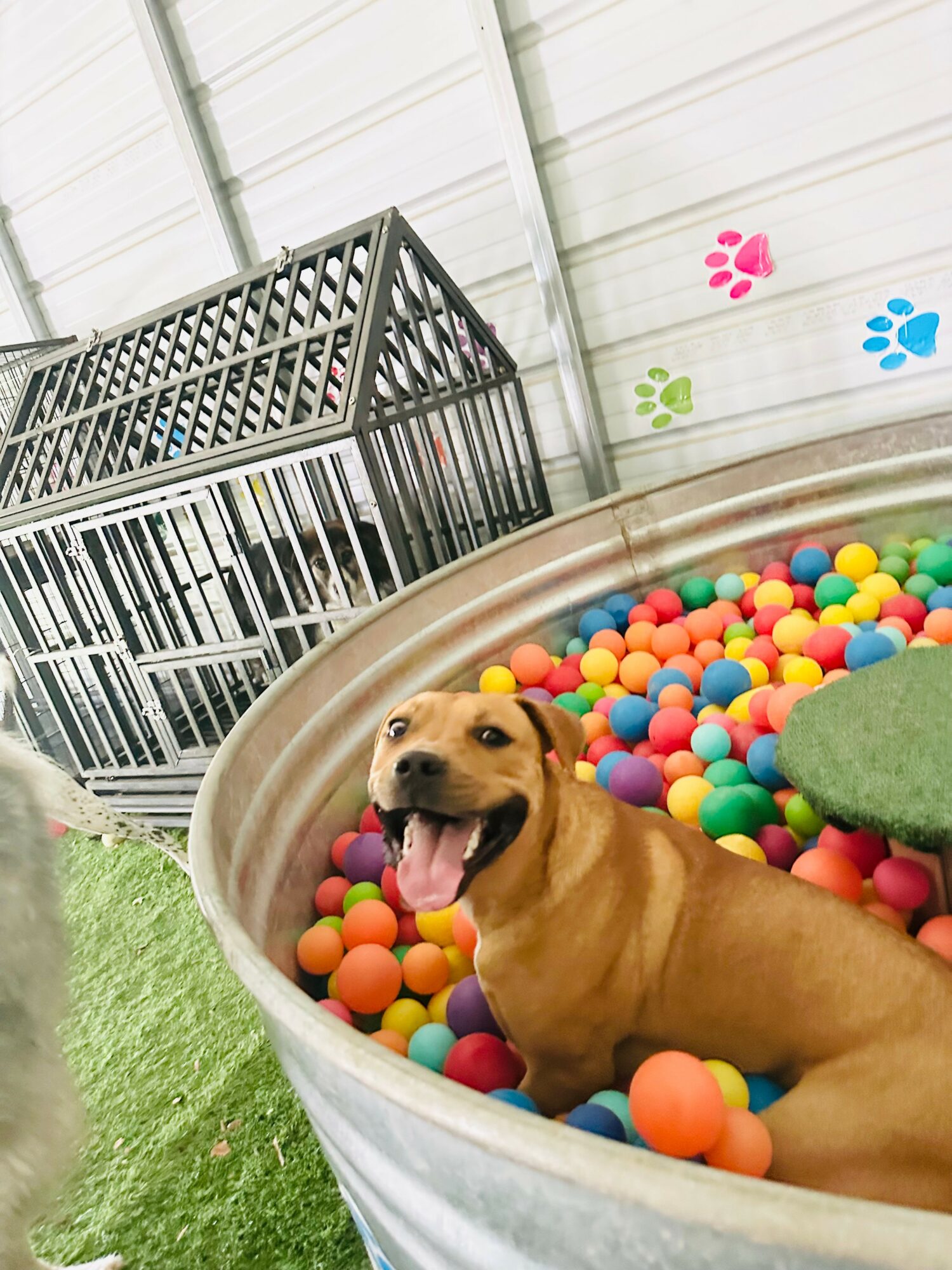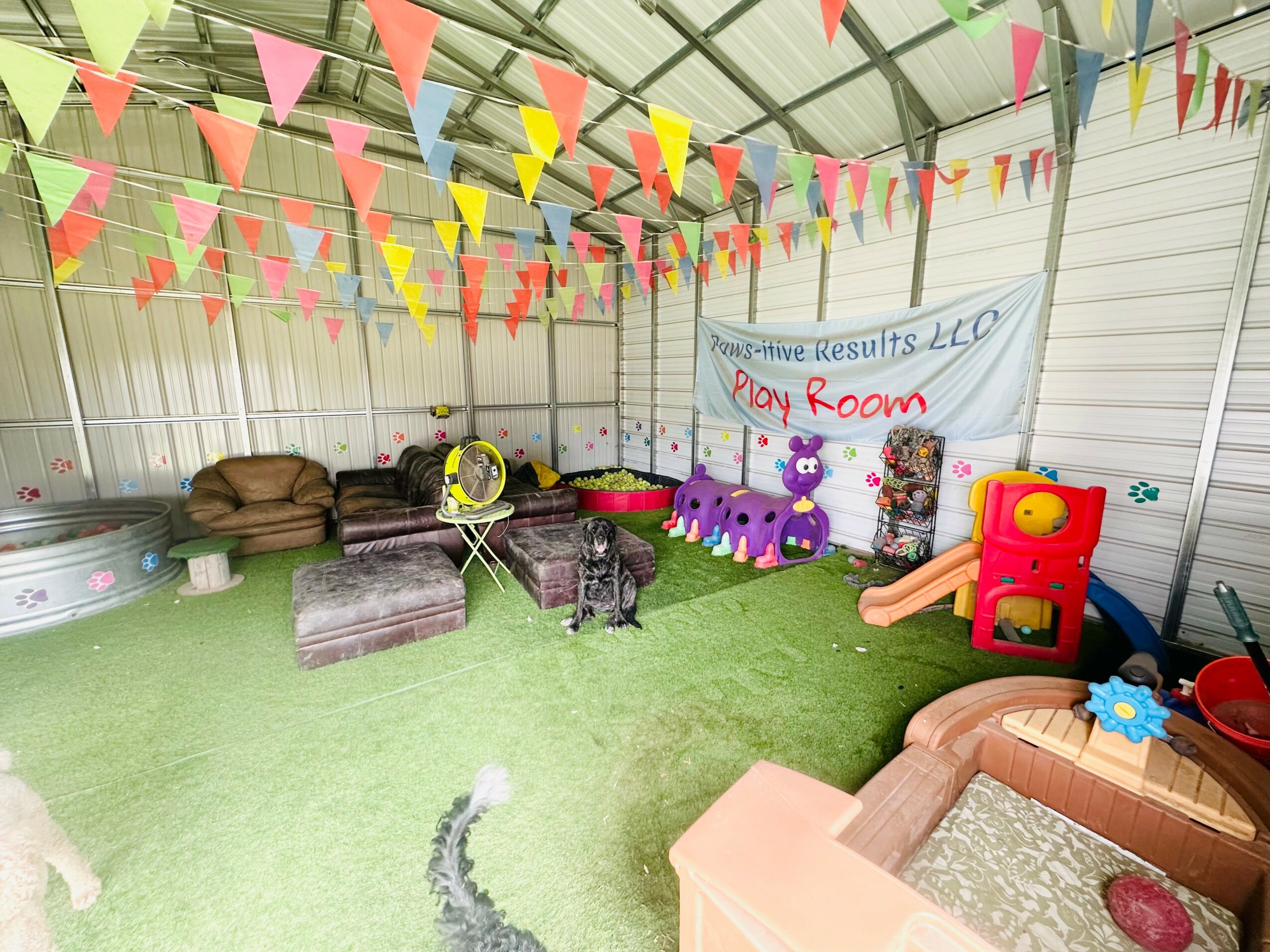 I run a free play doggy daycare and boarding for big dogs (40+lbs) only. Like a supervised dog park vacation! I thought of all kinds of things a dog would love like, running, digging in the sand pit, two ball pits, slides, tunnels, pools, stick library, structures to climb on and farm animals.