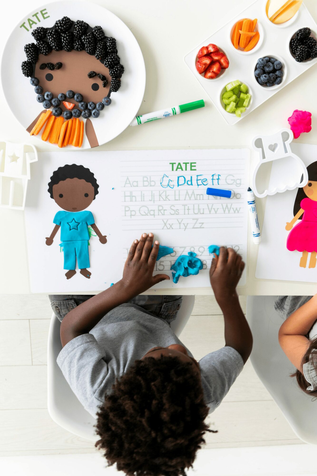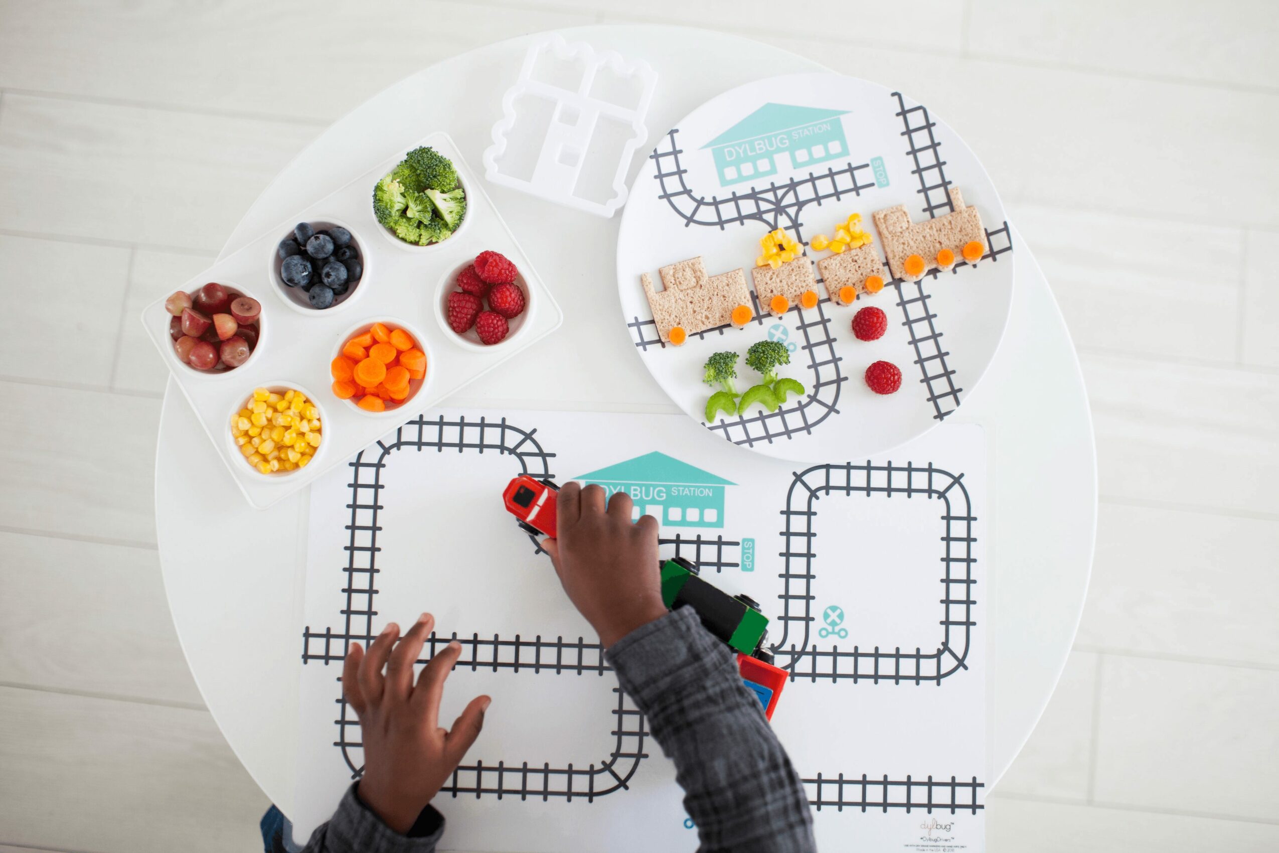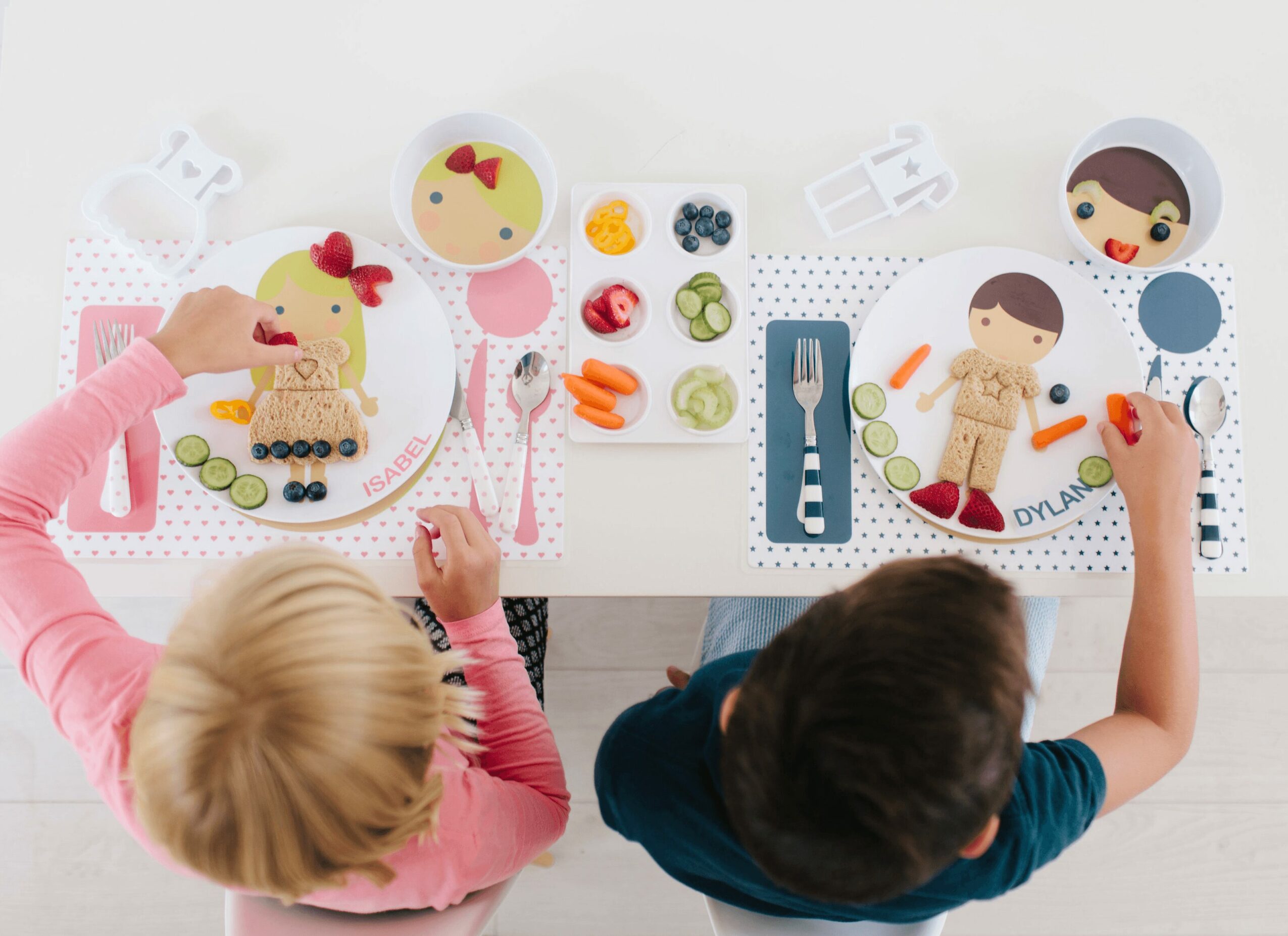 The plates encourage and help picky eaters. Parents can lay out a variety of colorful foods, including their child’s favorites and those that they may be reluctant to try. Then encourage them to create a “blueberry headband” or “strawberry cheeks” and explore food in a fun way without the pressure of eating it.