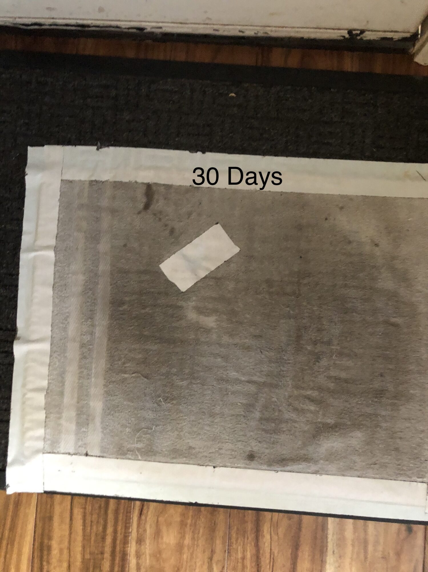 (I’ll ad pictures of a while towel I taped in a doorway, and how many days pass. Imagine what gets tracked in the house at six months let alone a year!!)
