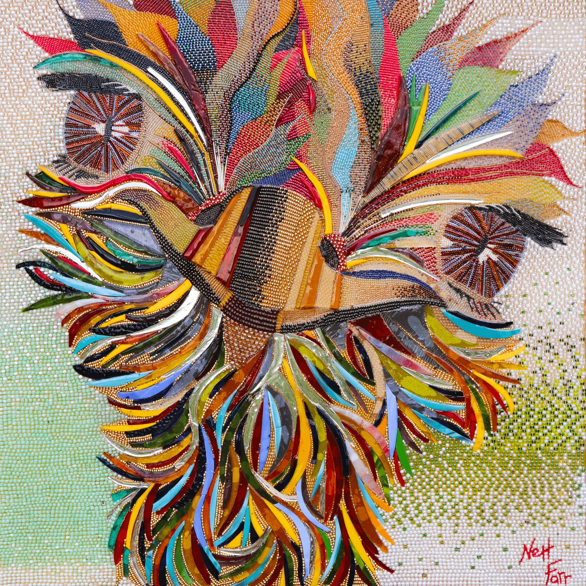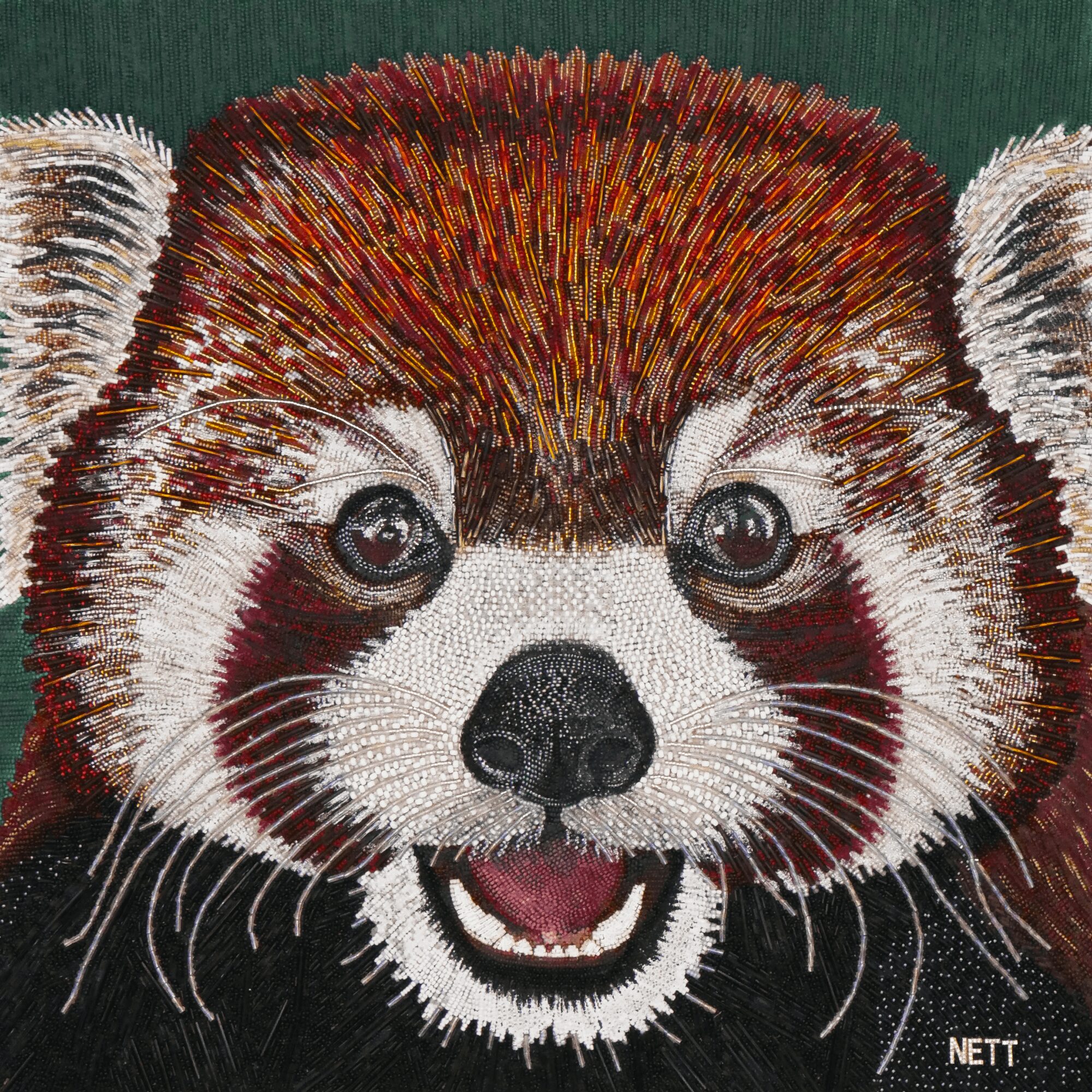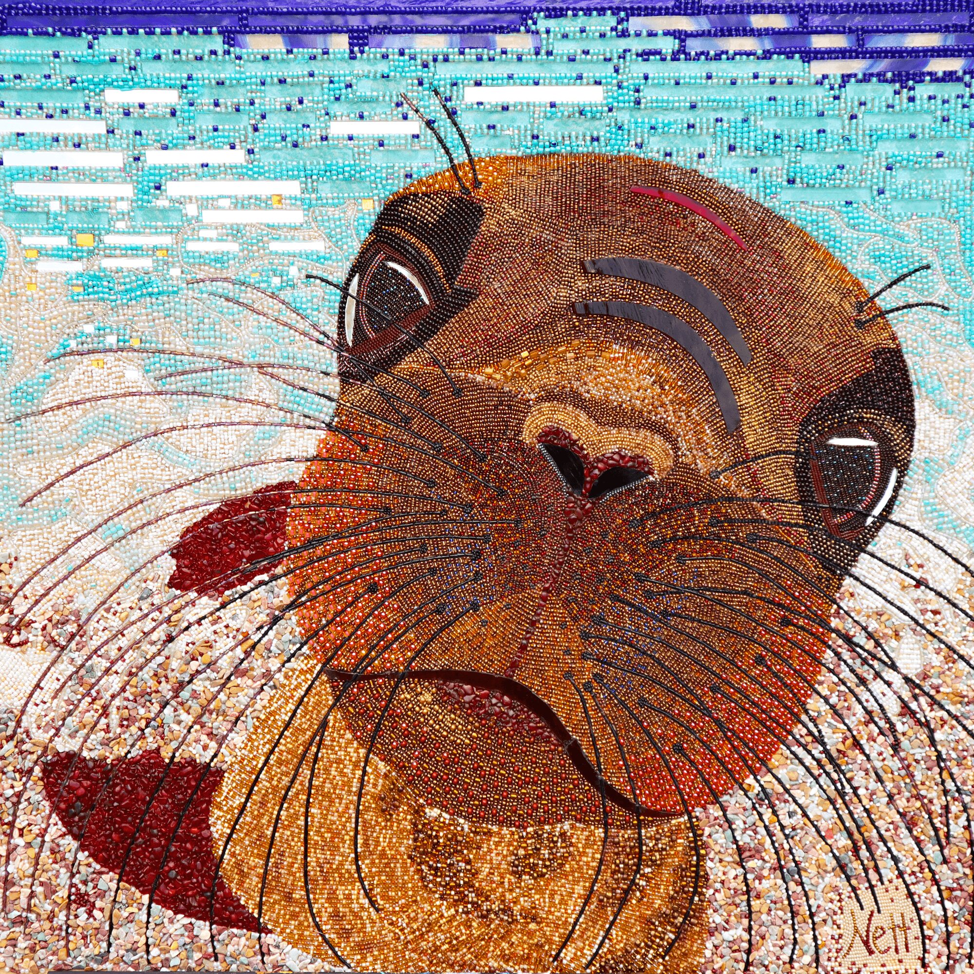 People will compare my work to pointillism, which makes sense – except instead of paint, I’m placing thousands of glass beads one by one. What I’m most proud of is the response it evokes. People often lean in close, trying to understand how it’s made, and then smile (or laugh) when they realize it’s all done by hand. That sense of joy and discovery is what I hope to share through my work.