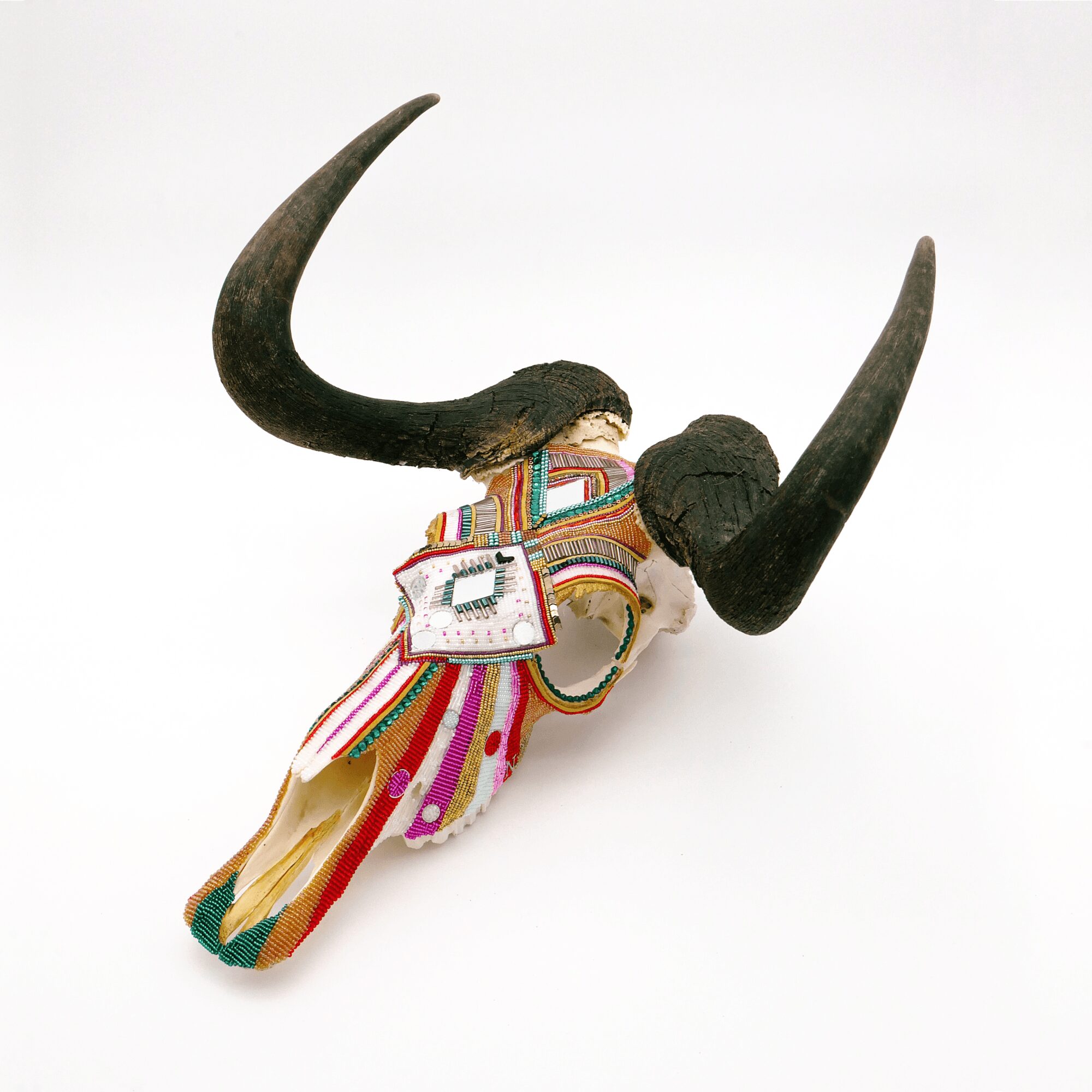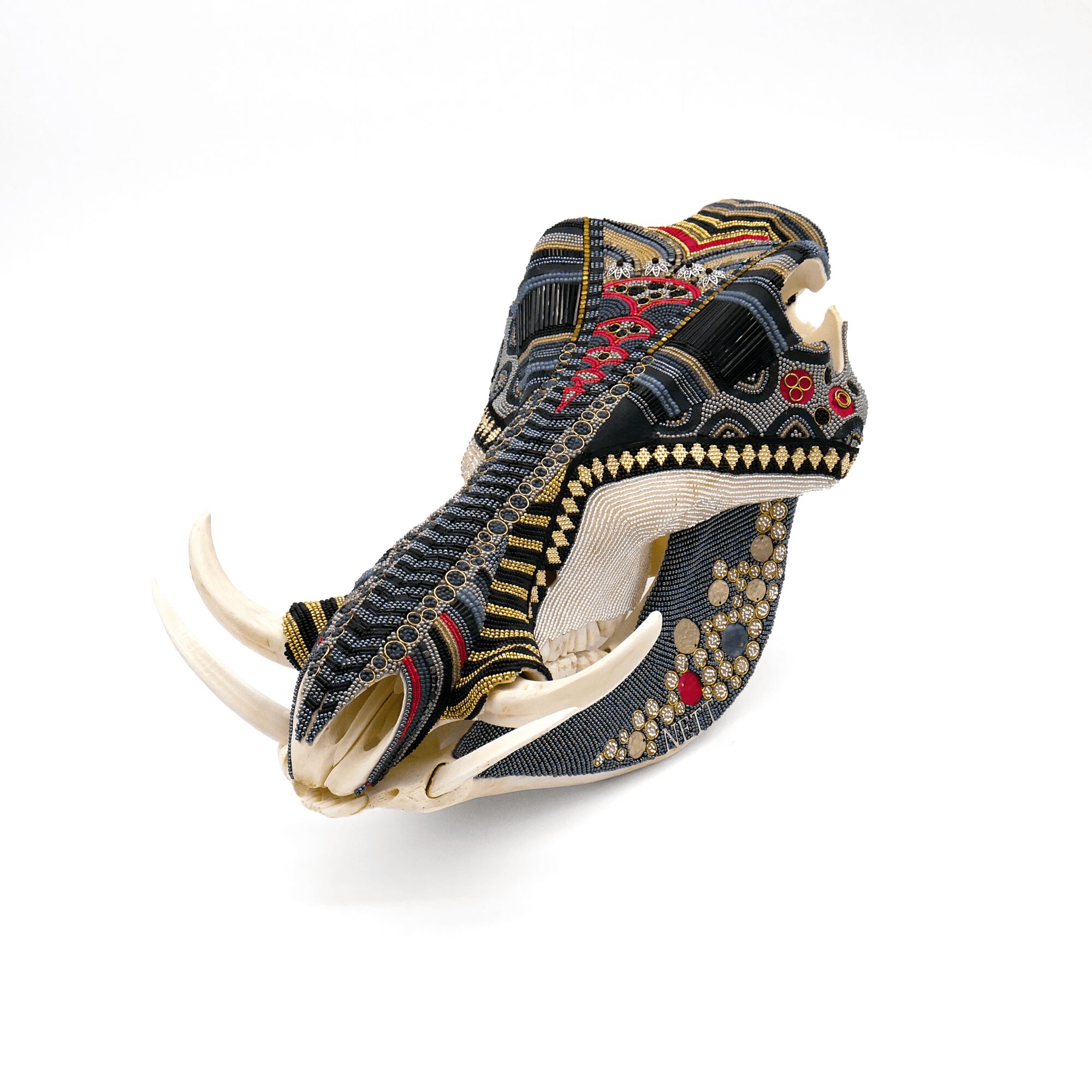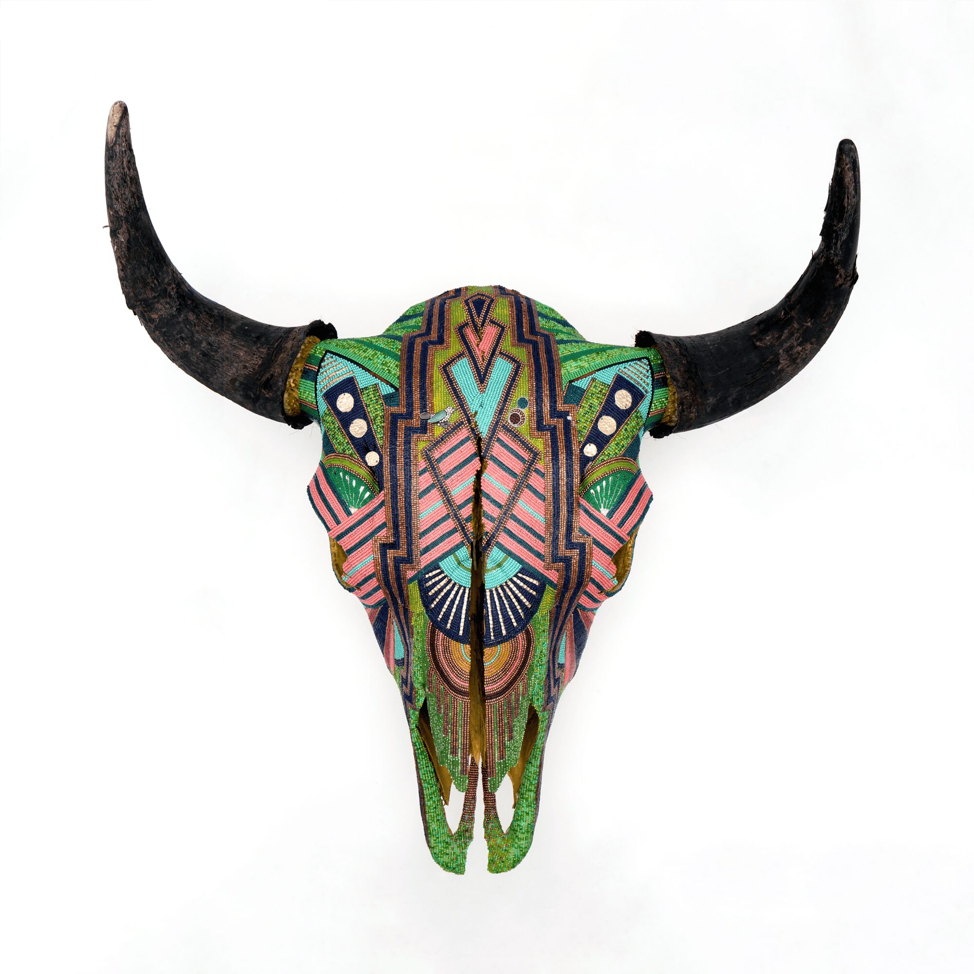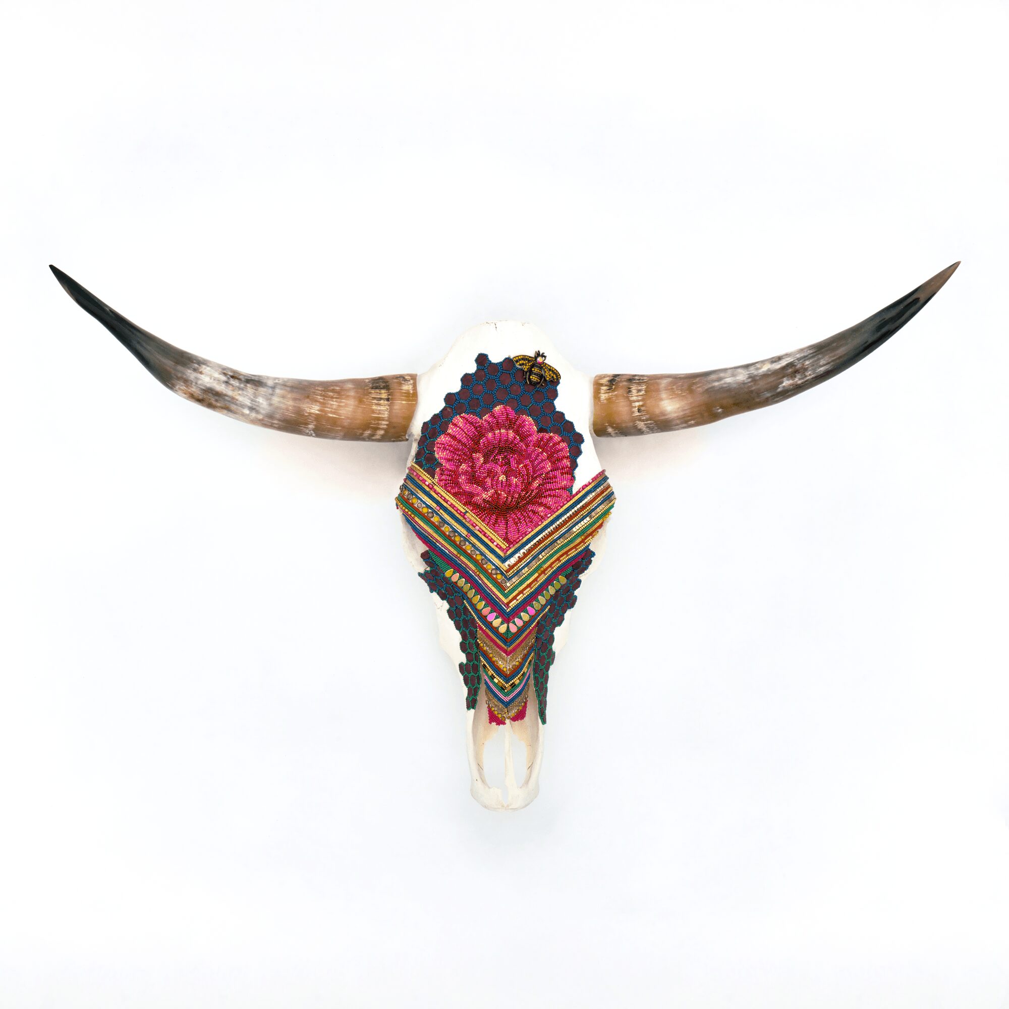 I’m probably best known for my beaded skulls- especially the ones covered in colorful floral designs. They seem to draw people in because of the detail and the way the light interacts with the beads. There’s a precision and rhythm to the process that feels almost meditative. Each tiny bead becomes its own brushstroke that adds up to something vibrant and whole.