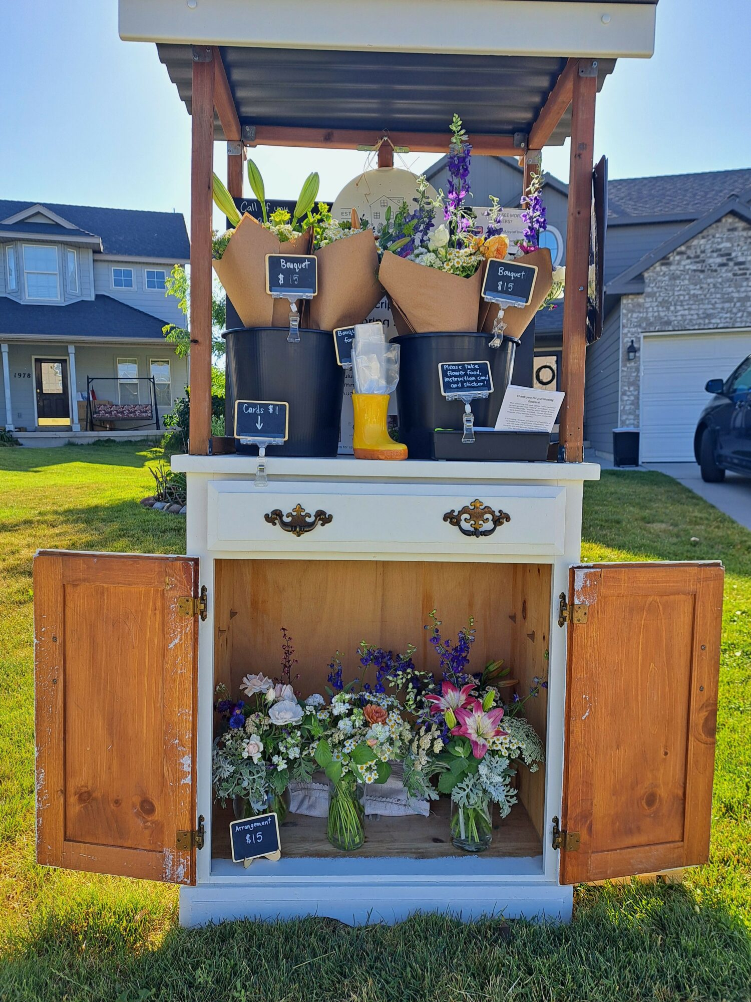 I jumped in with both feet. I started selling flowers at the Eagle Mountain Farmers’ market and moved to simply selling flowers in a small flower stand on the side of my yard. My first year was very experimental–I still managed to kill a lot of flowers, but I grew enough to sustain a couple of flower subscriptions and custom orders a month. Last year, I started collecting more data on my flowers. I grew 7,000 flowers in 2024 and this year I was able to increase that to 8,300, all on less than an 1/8 of an acre.