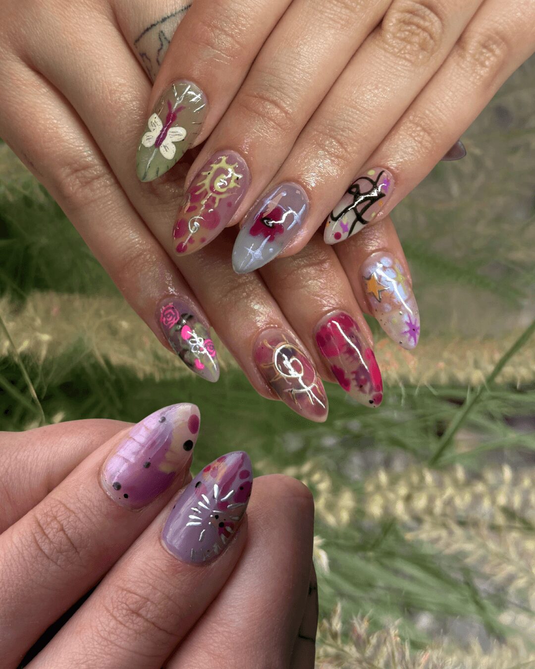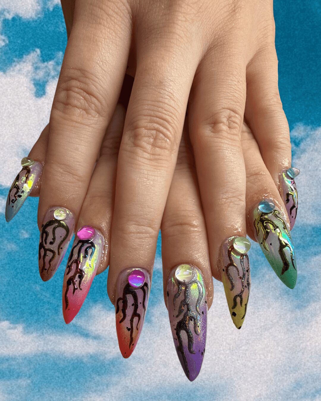 It’s been one year since I started my journey of becoming a nail tech! I can’t believe how fast it has gone by, and that I actually made it happen. It started off as just a thought or a “maybe I’ll try it out”. My friends and family kept telling me to do it, so I did! I have completely surprised myself by what I have been creating. I’ve done nails for musicians at festivals, for queens during pride month, for best friends, for strangers, for so many beautiful people. I put myself out there in hopes it would pay off. Not only has my art shifted and improved, but so has my confidence.