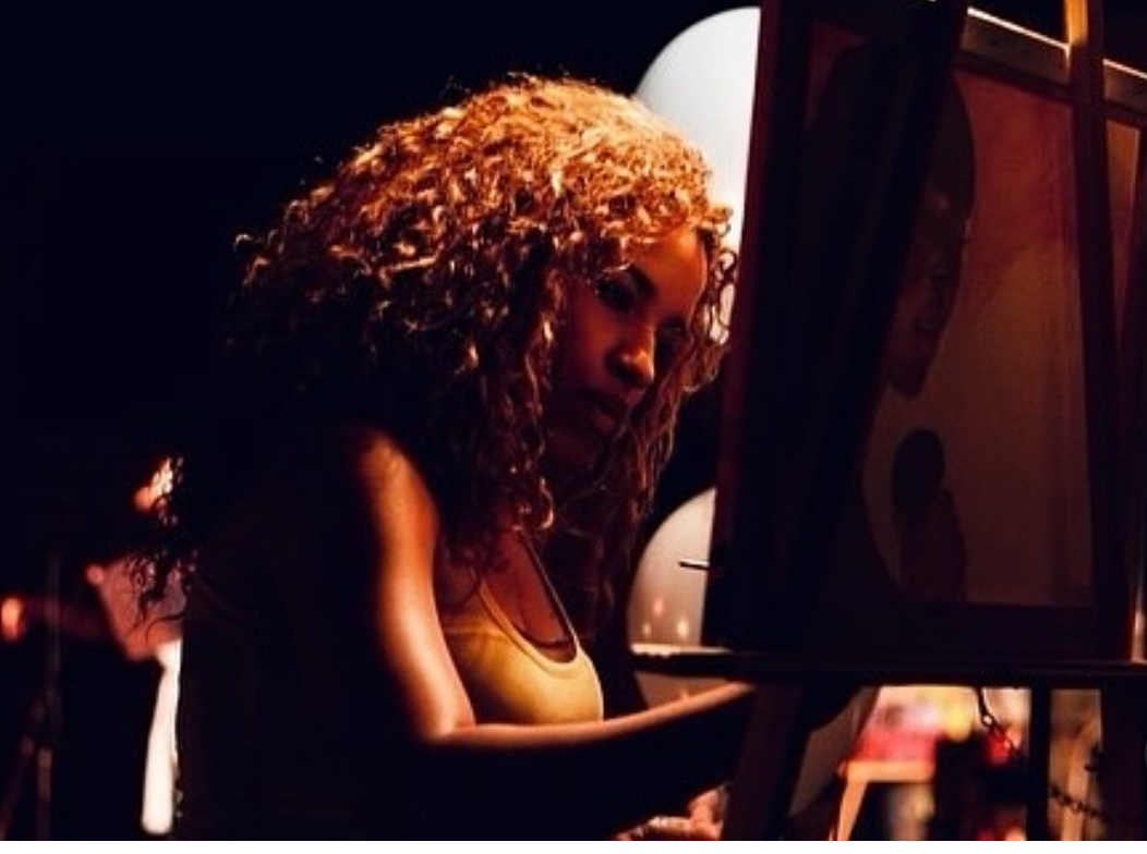 I started exploring multiple mediums early in my life. I have always been a creative and passionate artist and individual, finding joy in pushing creative boundaries from portraits, murals, book illustrations and more! Although I loved working was graphite, I grew to love acrylic paint. Which in turn allowed me to create live paintings in venues and showcase my art in businesses and homes across the world and now a historical concert hall. A true core memory was working alongside visual artists Charles Bibbs in my youth which deepened my understanding of artistry and creativity.
