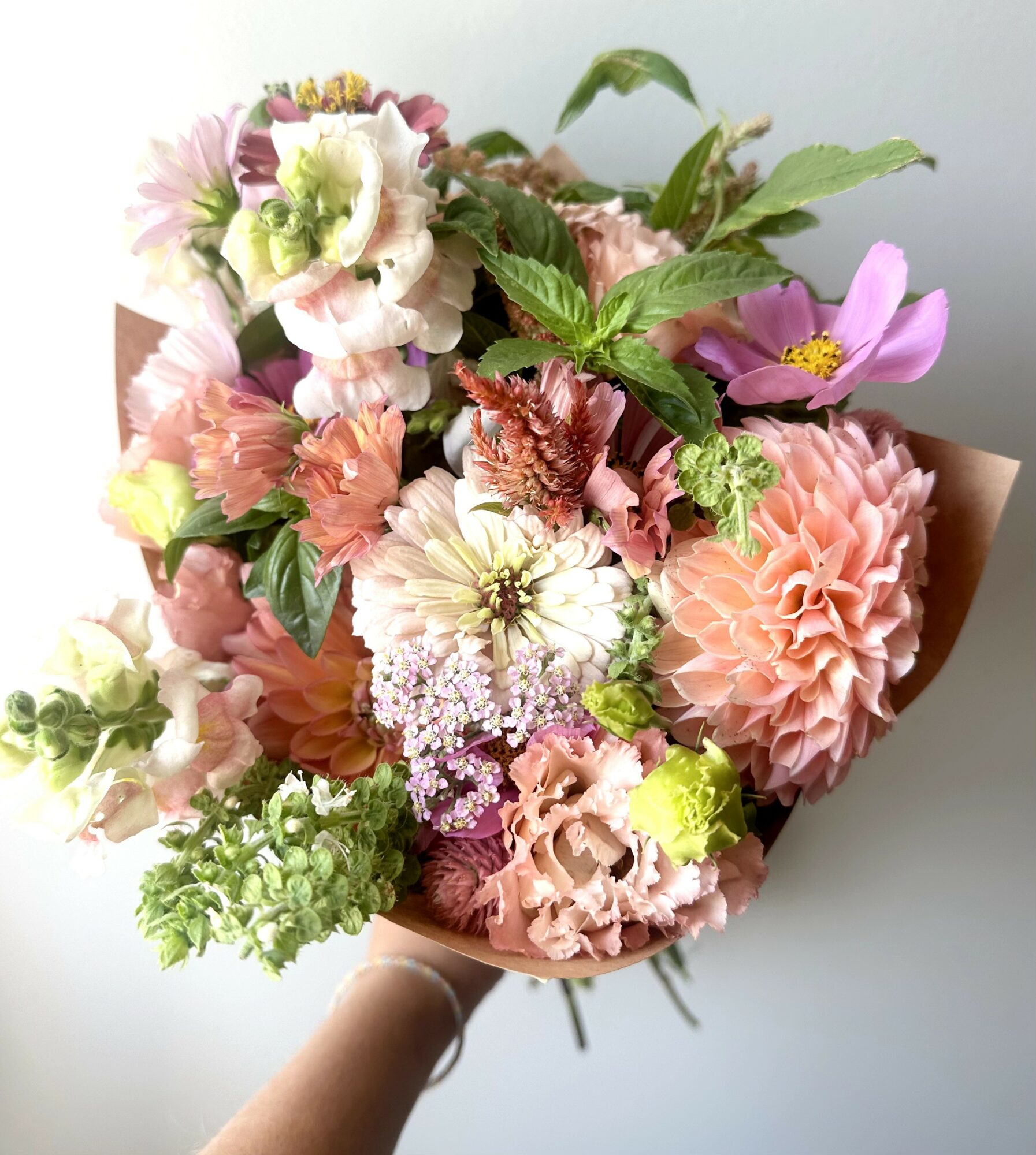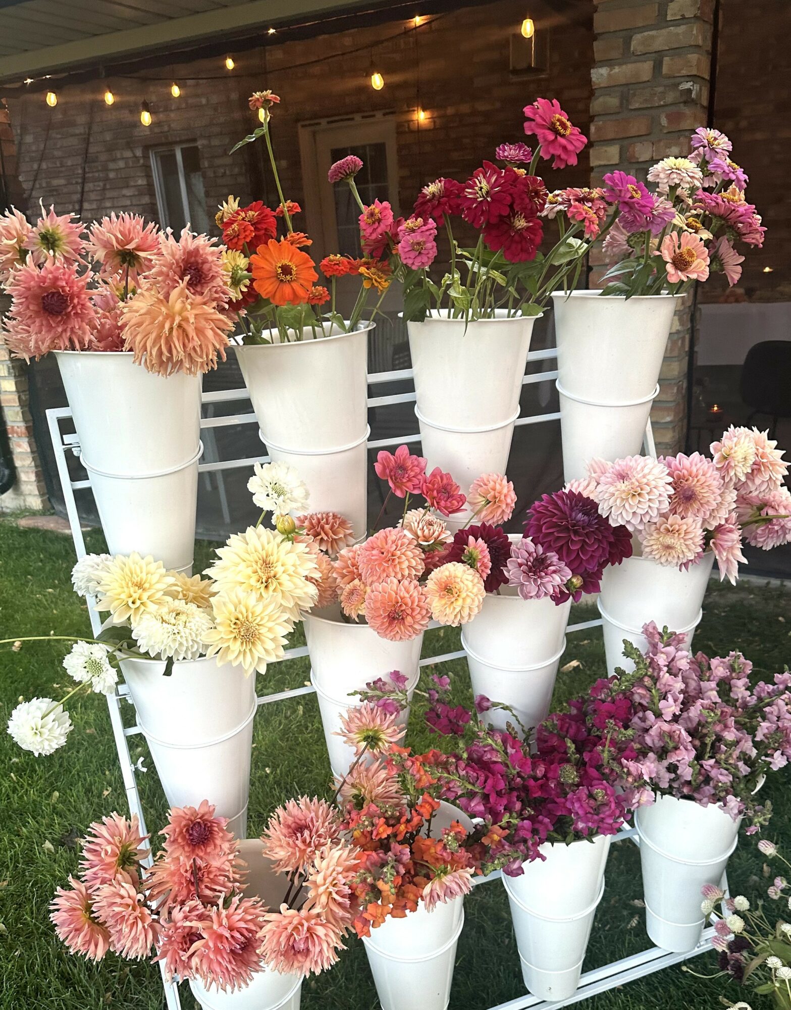 We love growing and putting together flowers that we know will brighten our customers’ days: whether it’s a bouquet someone selects at a market, a weekly subscription of flowers to cheer up their kitchen, or a u-pick experience where they select their own flowers. We’ve also become self taught florists and regularly arrange flowers for all kinds of occasions like weddings, funerals, showers, baptisms, parties, etc. We also sell wholesale for events by the stem or in DIY buckets.This year, renting out our flower stand with a variety of flowers has been a hit for a “build your own bouquet” experience at showers or other events.
