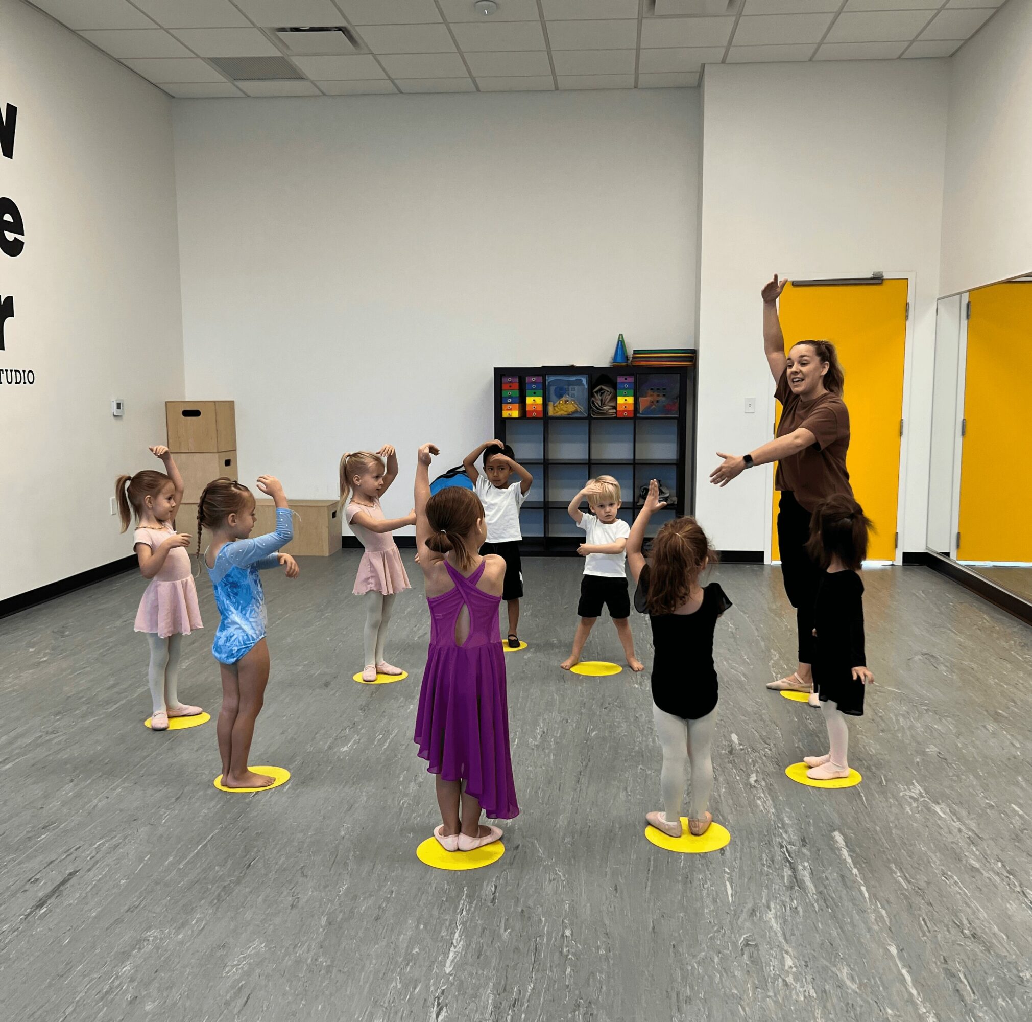 We moved to Utah for my husband’s job, and we had space in our basement for a gym. We were trying to make ends meet as new parents in a new state, and my husband suggested that I start teaching dance in our basement. I started teaching 2-3 dance & theatre classes. Through the years more students kept coming, and soon it wasn’t just teaching some classes, it became a studio that our students in the neighborhood came to. After 10 years of teaching in my basement, we opened what is now Yellow Stage Door in the South Jordan/Daybreak area in the summer of 2024.