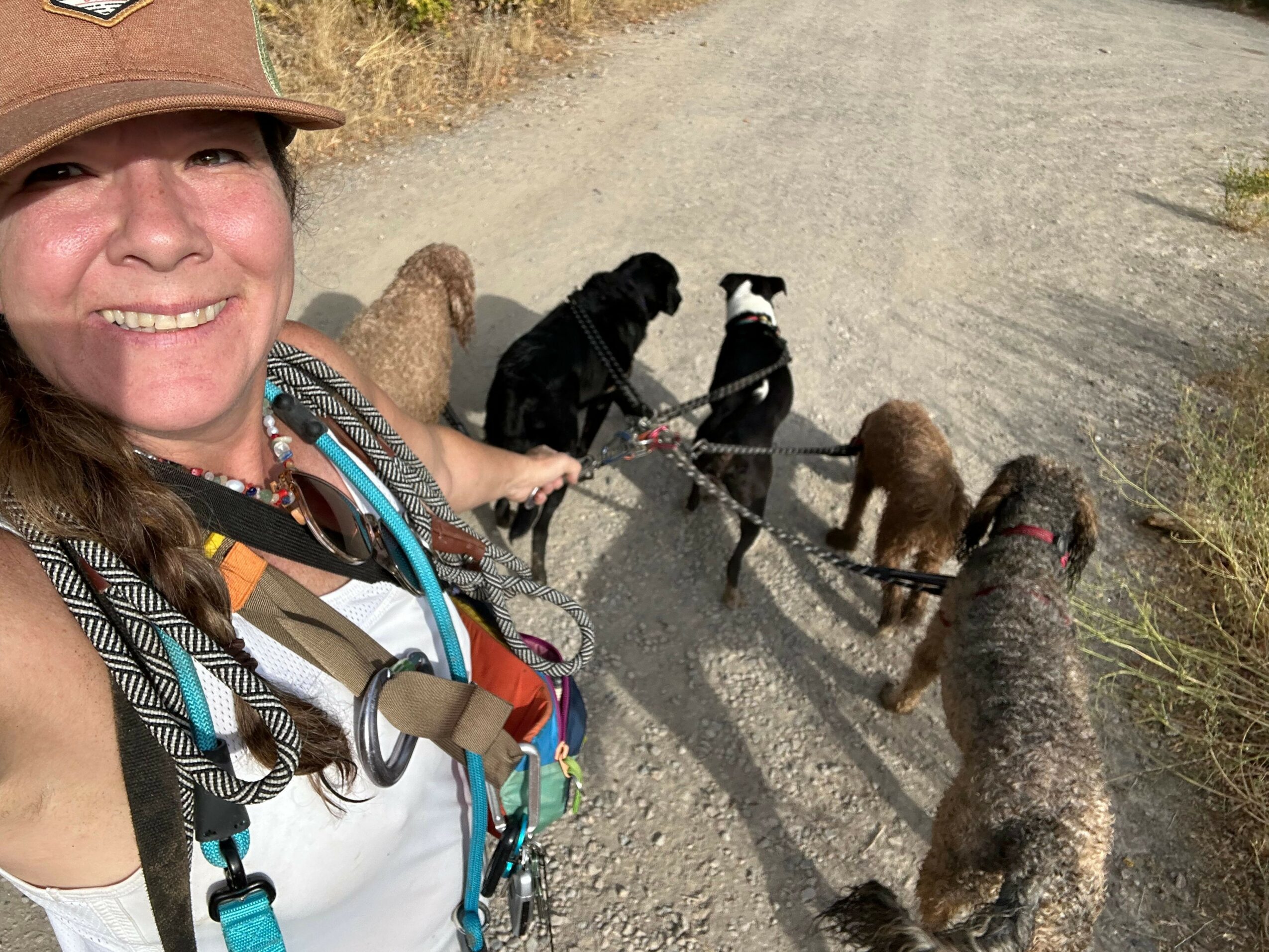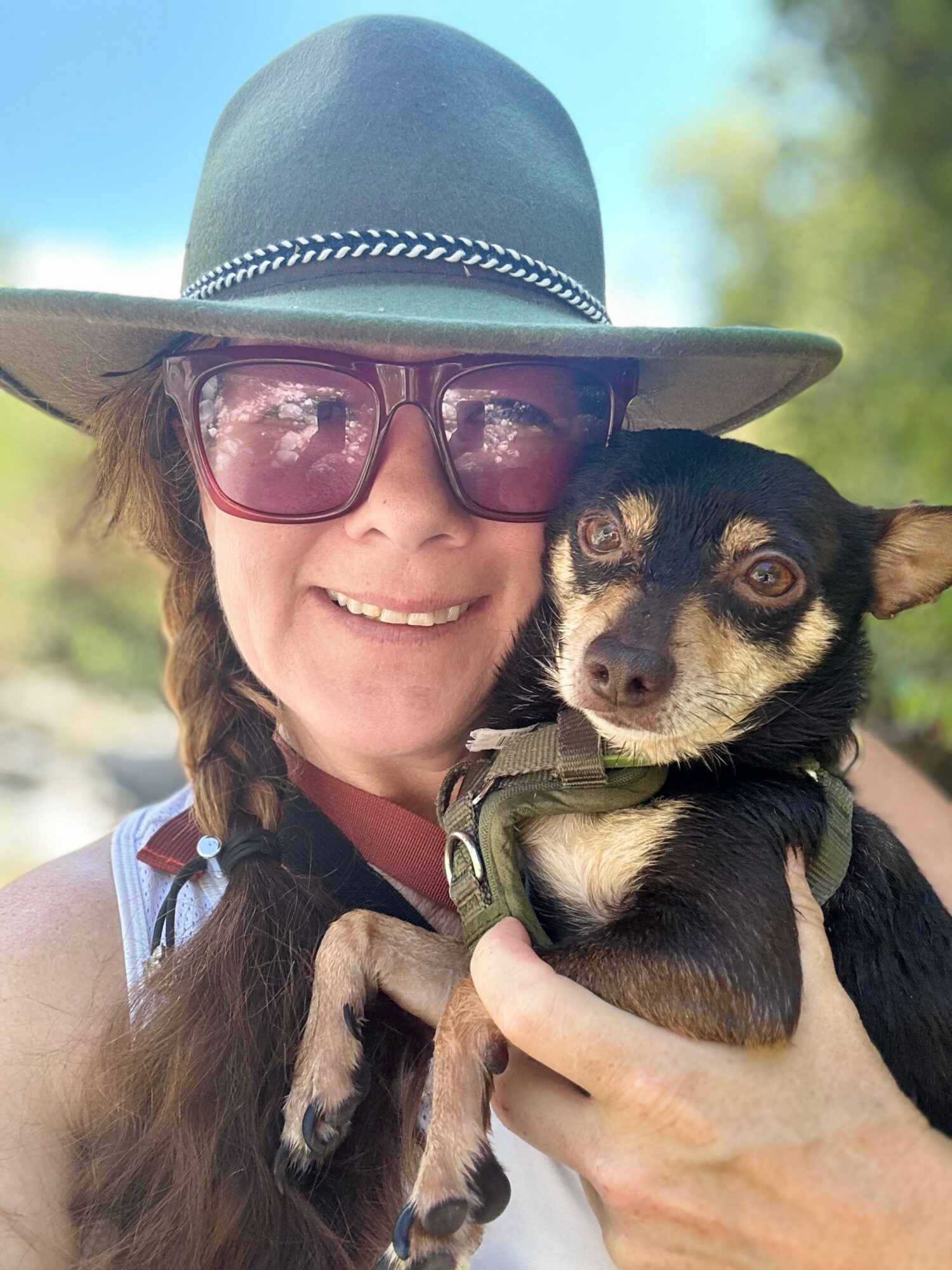 I’ve been working professionally with dogs since before 2009 and started taking client dogs on the mountain trails in 2012, long before ‘pack hikes’ were trendy. I built Shanti & Me LLC as a single mom in Millcreek, hiking the same canyons over and over until they felt like a rolling temple and classroom. Over the years I added grooming, bath‑and‑brush, and now Hound Bath sound sessions, always with the same core values: safety first, muddy paws welcome, and deep respect for the land we’re using. Five years sober and on the other side of major cancer surgery, I’ve rebuilt my work to be slower, more intentional, and rooted in ceremony—off‑leash mountain trail company, muddy paws required.