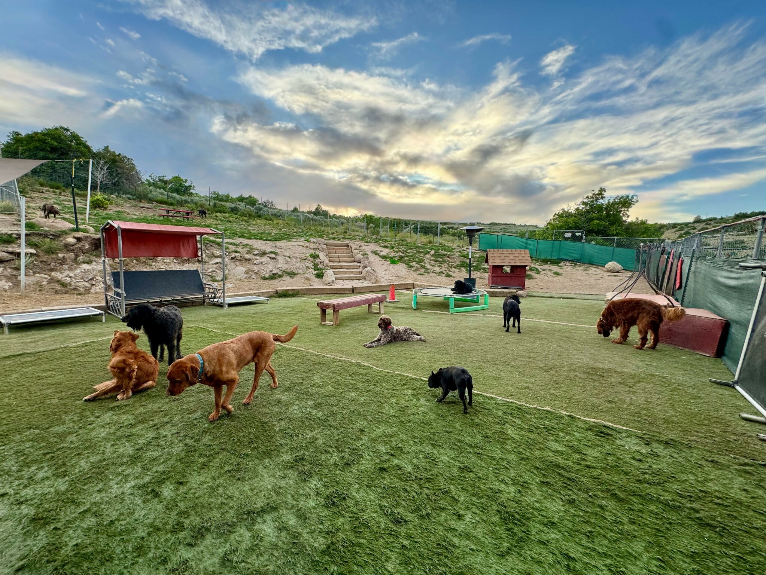 In 2013, my family and I moved to Utah with a shared vision to create a kennel-free dog care facility where dogs could truly be dogs. Fetch is a family-run business, owned and operated by my parents, brother and me. We have 50 acres of natural terrain, including 5 acres of fenced yards where dogs can run, play, dig, and explore. Approved dogs also enjoy supervised off-leash hikes across the rest of the property. Our facility is staffed 24/7, and the front half of our building is designed like a home—complete with dog beds, couches, and even king-size beds where dogs can sleep next to our staff—so they can relax in a true home environment.