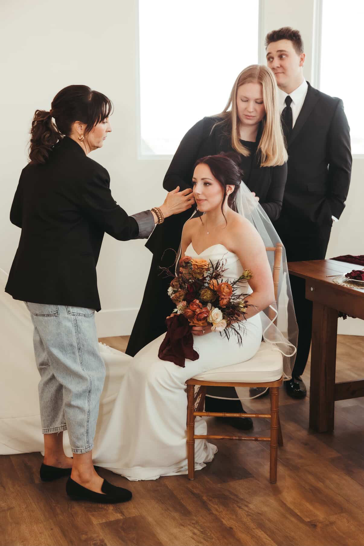 After planning my own daughter’s wedding during the pandemic, I converted the sunroom of our little farmhouse into a dedicated studio space. I wanted clients to have the option of a beautiful, relaxed environment where they could truly enjoy the experience of getting ready without the chaos that often comes with preparing at home — dogs barking, family rushing around, or brothers eating cereal at the kitchen counter while the bride is trying to prepare for one of the most meaningful days of her life.