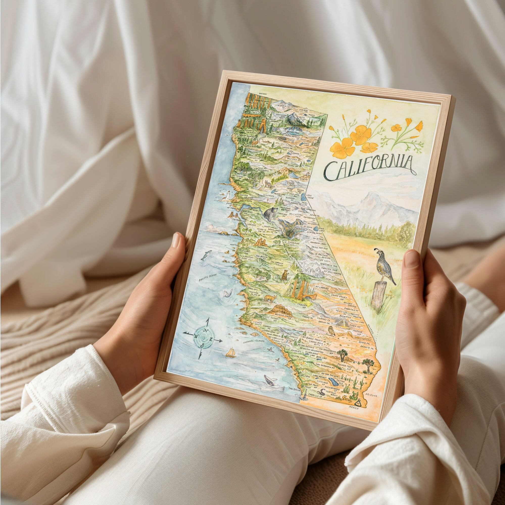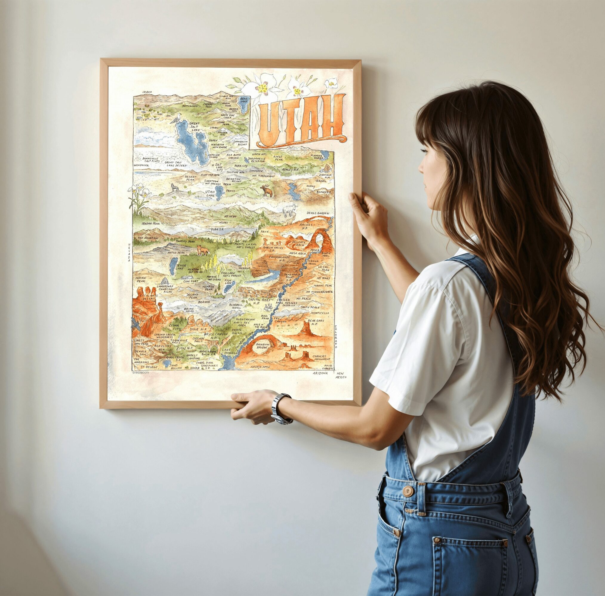 “We are putting the ART in cARTography”. Our watercolor hand drawn maps are thoughtfully curated and include National Parks, State Parks, Public Lands, popular outdoor attractions, wildlife, marine life, trees, flowers, waterways and so much more!
