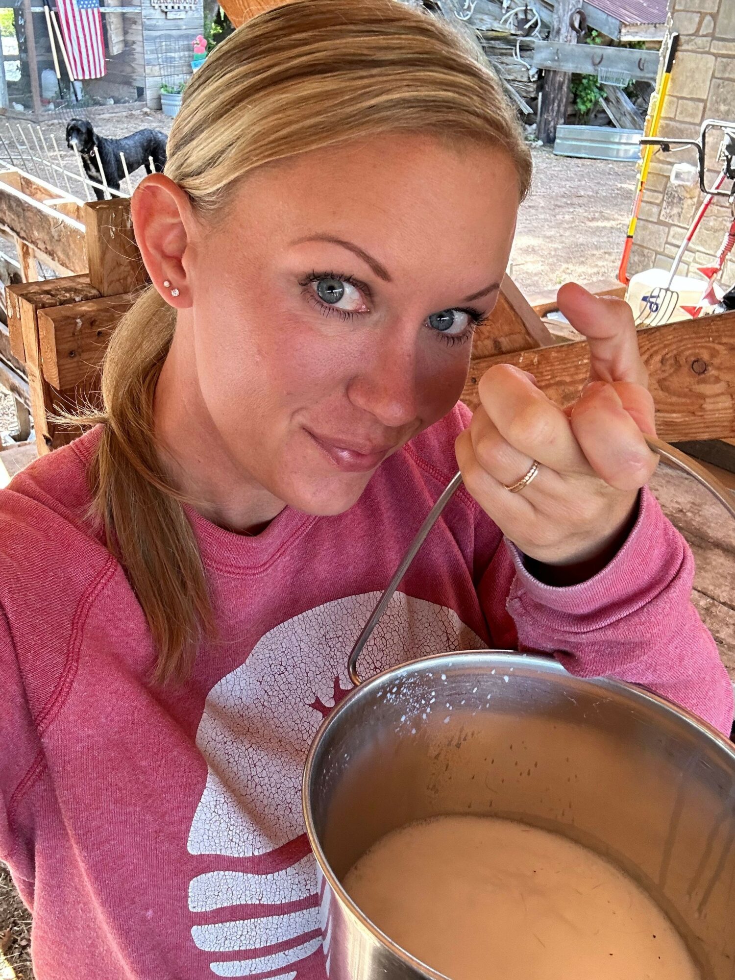 I wake up and get dressed in my workout clothing. I make breakfast for my children and call for them to come downstairs to eat and start our day at least 6 times. They finally show up and we discuss our plans for the day, they eat, and take vitamins. Then I have them get started on school (we currently do online/private school). I do a workout of weight training/walking. Then I respond to emails and do office work or ship orders. During my soap production weeks I spend most of my day making products to restock my store. Then I try and fit in farm and garden chores. I try to remember to feed my kids lunch (I am really good at getting them breakfast but lunch is hit or miss). My husband is a great cook so he usually does dinner and I clean up. Then we do chores, ride bikes, go hunting, or some other activity that we enjoy and crash into bed around 10!